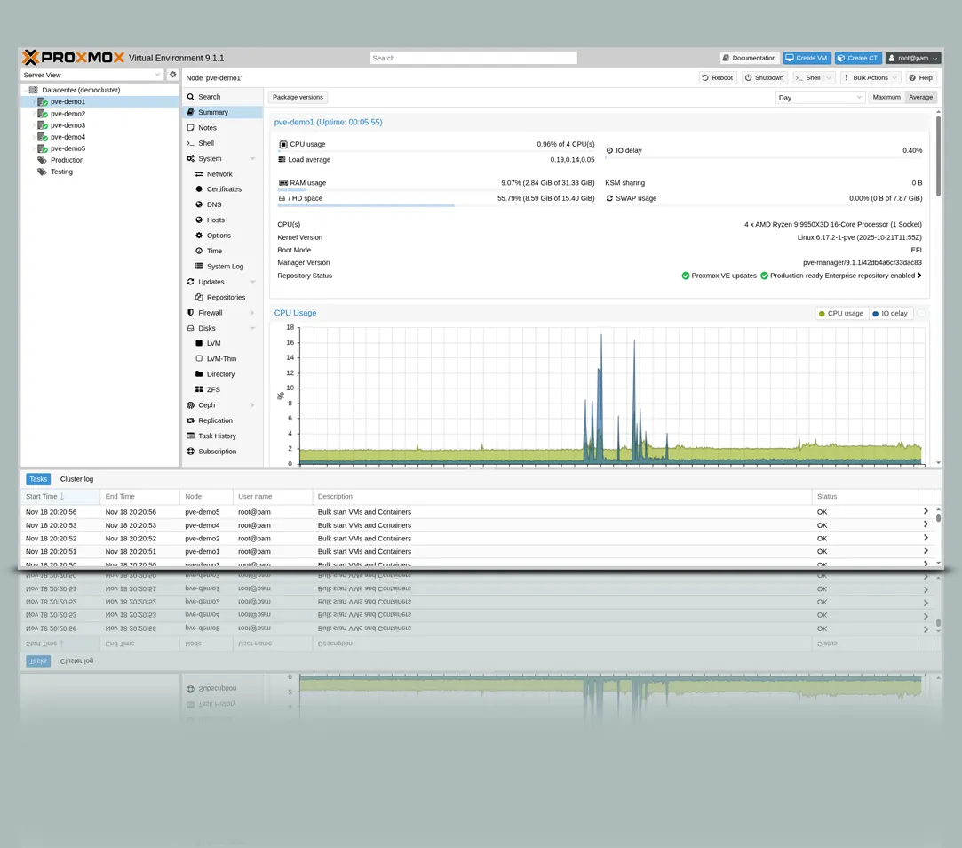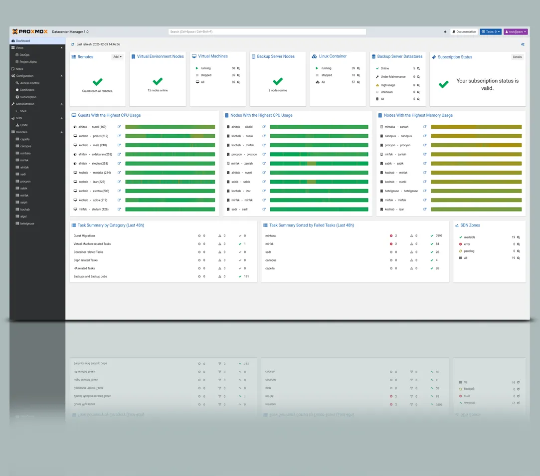 Durch die Kombination aus KVM Virtualisierung und containerbasierten Workloads entsteht eine besonders flexible, skalierbare und effizient verwaltbare Infrastruktur – gesteuert über eine zentrale, intuitive Managementoberfläche. Immer mehr Unternehmen setzen bewusst auf Open Source, um ihre IT-Infrastruktur zukunftssicher aufzustellen und gleichzeitig die Kosten für Betrieb, Wartung und Administration zu reduzieren. Proxmox VE überzeugt durch völlige Transparenz, volle Funktionsvielfalt ohne Lizenzgebühren sowie höchste Zuverlässigkeit und Sicherheit im Rechenzentrumsbetrieb.